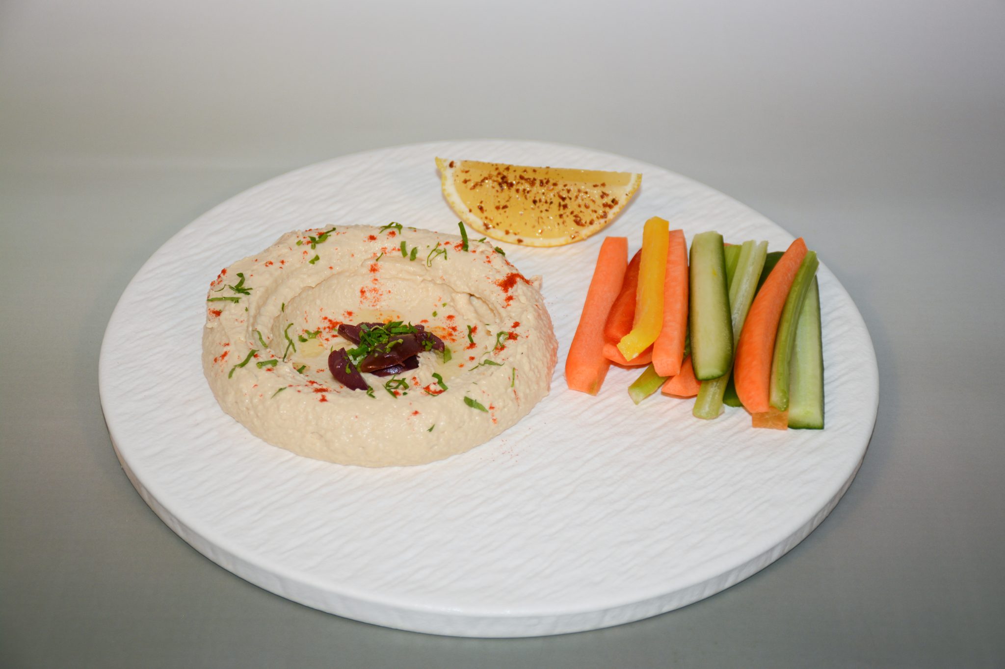 In house made chickpea hummus served with fresh carrot, cucumber, and bell pepper sticks. rich in fiber, and full of flavor. Allergens:Sesame