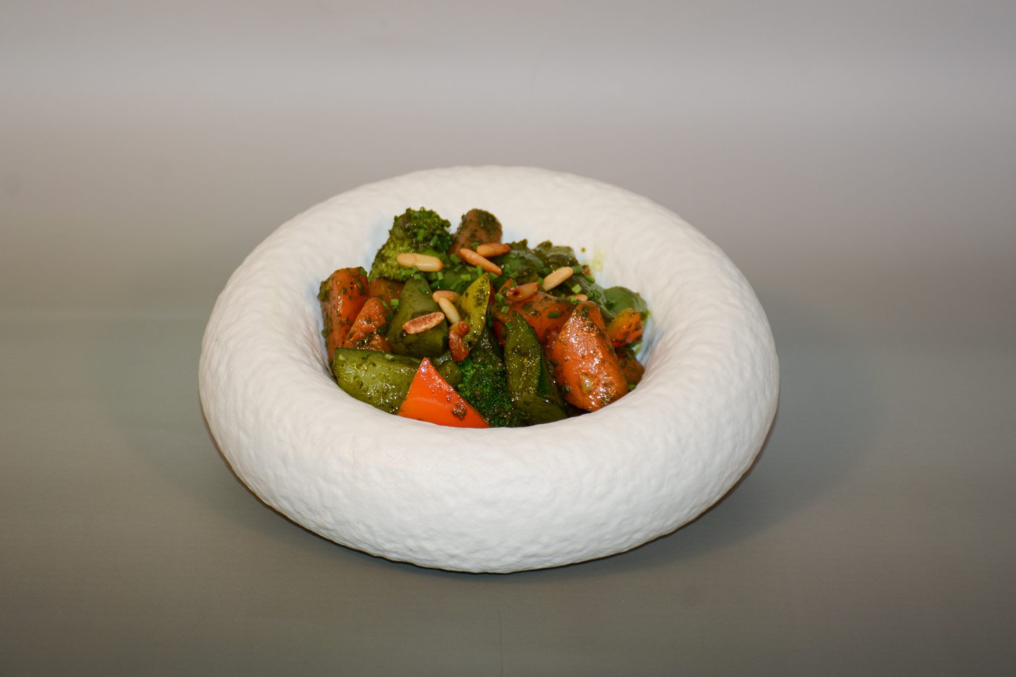 Handpicked mixed of vegetables marinated in olive oil and our homemade pesto sauce.